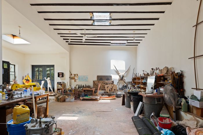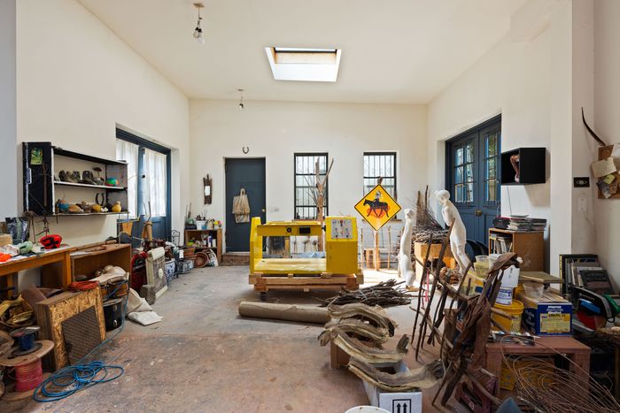 Greenfield is a sculptor who considers his home a sculpture, too — one that he built out of the shell of an old mechanic’s shop. In 1980, he agreed to pay $30,000 for two lots: on one, a mechanic had parked cars, on the other they fixed them in a windowless box with a concrete floor and a roller door. The roof was caving. There was no bathroom or kitchen, just a faucet that ran cold. And the façade “was really, really unattractive,” Greenfield said — covered in soulless stripes of glazed, white eight-by-eight tiles. But at the time, he couldn’t afford much else. He’d been priced out of a Soho loft, just before the passage of the 1982 loft law that would have let him stay there. He wanted a space to live and make art, where he’d never be pushed out again. “The house became, for me, a place of refuge. A stake in the ground. Nobody could ever take my home away again.”