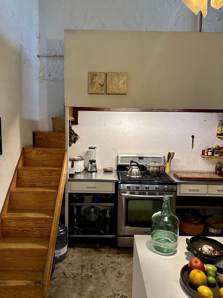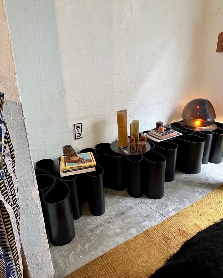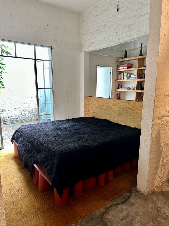 In 2015, California native Brian Thoreen, an artist and designer, was on his way with his son and his brother to the Yucatán when a hurricane hit, so they ended up diverting their trip to Mexico City instead. “I instantly fell in love with it even though I didn’t know anybody,” Thoreen recalls. He kept coming back, getting to know the community of artists there, until finally, in 2018, he ended up renting this space — there’s a studio, a kitchen, two bedrooms, a patio, and a dining area — from artist Thomas Glassford. He and his wife, Tess Lochanski, who is French, have an apartment in Paris, but they spend most of their time in Mexico City when Thoreen is not traveling for exhibitions of his work. To make it perfect, Thoreen says, “I basically didn’t have to do a whole lot.”
