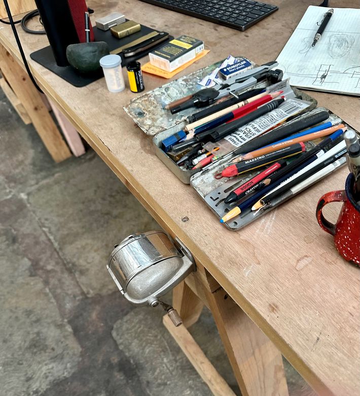 “The pencil sharpener I bought at the flea market La Gunilla. It’s sort of a staple for me. In the shop when I’m building/fabricating, a regular pencil is much better than a mechanical pencil as long as it is kept sharp.”