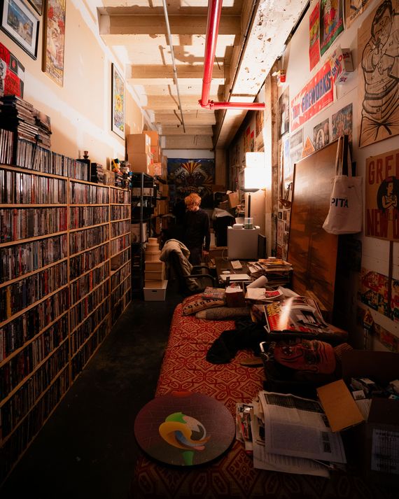 Down the hall from Curtis Mitchell’s loft in the former ice cream factory is a small door that says “Employees Only.” At first glance, it looks like a janitorial closet, but this is the entrance to Jim Thirlwell’s expansive loft and home studio. Thirlwell is a dynamic musician who has multiple musical monikers. In the 1980s, he was Foetus, an experimental and punk alternative to the rigidity of rock and roll. Now, he’s Steroid Maximus, a primarily instrumental ensemble that mixes classical and jazz to create a cinematic composition. He also works to score film and television. Thirlwell has incredibly intricate, unique arched windows that nearly reach his 14-foot concrete ceilings. He has built a home studio where he records, sometimes with an ensemble of other instrumentalists. Inside a back room of the loft holds thousands of vinyls, tapes, and CDs that Thirlwell has amassed over the years.