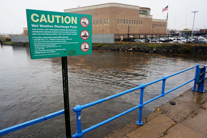 The problem of raw sewage in New York City’s waterways is not a new one, but the record rainfall this summer, the second-wettest in the city’s history, has made it a distressingly common presence along our 522 miles of coastline. That’s because about 60 percent of New York is still served by a combined sewer system, which carries wastewater and stormwater to a treatment plant in a single pipe. Having citywide plumbing at all was an upgrade in the late 19th century when the system was built, compared to dumping outhouse contents straight into the nearest body of water. But when it rains as little as one-tenth of an inch per hour — about 30 to 45 minutes of light rain — the combined sewage and stormwater runoff can exceed the capacity of the city’s 14 wastewater-treatment plants and is released into waterways in what’s known as a combined-sewer overflow. In an average year, about 21 billion gallons of polluted stormwater and raw sewage — enough to fill the Empire State Building 72 times over, according to the environmental organization Riverkeeper — pour into city waters. After decades of regulation to reduce industrial pollution and illegal dumping helped make New York City’s waters the cleanest they have been in a century, climate change threatens this new baseline. Local water-quality advocates see this summer as a warning of what’s to come with more extreme precipitation. After all, “the city’s waterways are still used as an open sewer,” says Mike Dulong, senior attorney at Riverkeeper.
