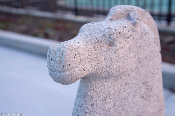 The horse sculptures were originally designed in 1964 by modernist Sardinian sculptor Costantino Nivola for the Upper West Side NYCHA complex and installed in its outdoor recreational area. Over the years kids played on the statues and they became beloved local figures, even as their noses got smashed off and their white, black, and gray coloring was wearing off over time. Then, in 2021, they were suddenly removed overnight by a landscape contractor who — to the horror of preservationists — sawed them off at the knees to conduct a water main repair, leaving behind only their little hooves. NYCHA promised that the statues would be reinstalled after a planned redesign of the plaza finished in 2022.