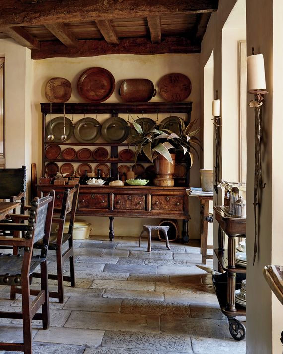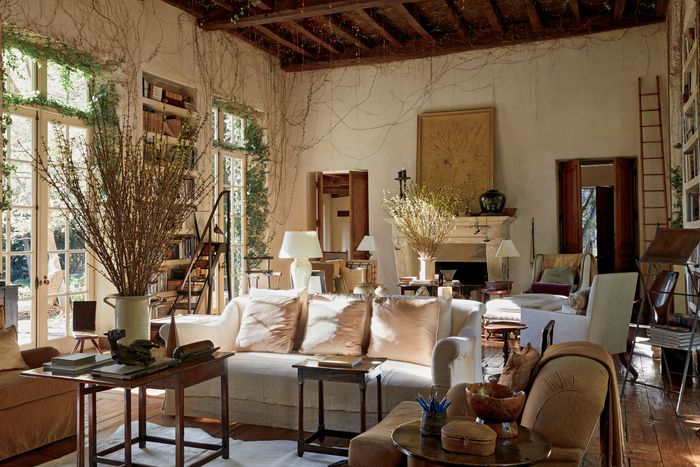 The interiors shown in The Private House — which include some of her own home, others of unnamed clients — tend toward the rustic and French with primarily wooden furniture. And although Tarlow says it’s a misconception that she dislikes contemporary furniture and bright colors (“If I were to do a new house now, it would be totally contemporary,” she says), the book’s images primarily feature antique and vintage furniture and neutral color schemes of creams, parchments, tans, beiges, and browns.