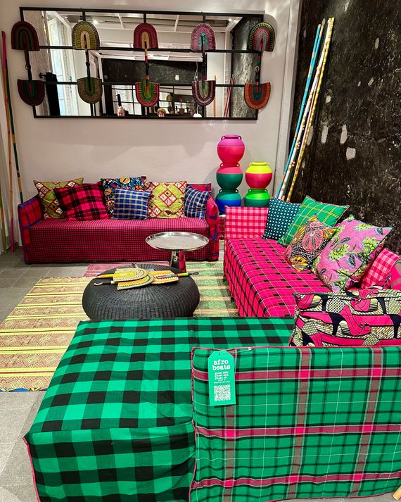 At the Gervasoni flagship, Paola Navone’s Ghost Collection was completely transformed by a wild spectrum of upholstery patterns, which included sofas in the Afro Beats pattern drawn from Maasai Tartan fabrics and plastic-covered armchairs in a vibrant pink hue created by Elsa Schiaparelli. Ghost was set up by Pavone’s Otto Studio and Beatrice Rossetti Studio, where I couldn’t resist the splash of Marimekko raincoats.