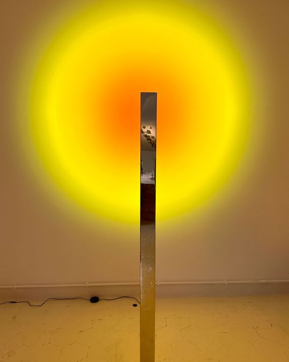 Halo Editions introduced a new collection of intensely theatrical LED lighting in polished brass, and the colors radiating out from the minimalist forms were breathtaking.