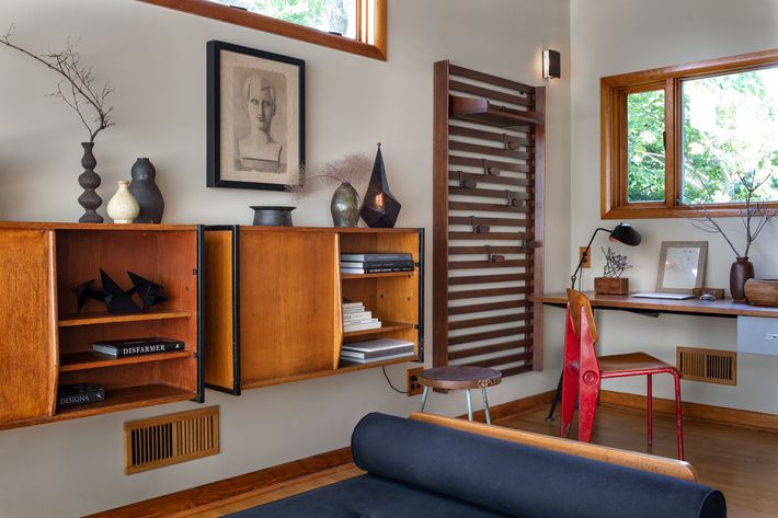 They came back the next day to tour the property. Its listing mentioned the architect of the house, Edward T. Bowser Jr. “I had never heard of him,” says Mariconda, a fashion executive. “And it said that he had worked for Le Corbusier.” It was in pristine condition, its heritage intact, and they bought it. “When the house was first built, there was nothing there,” Mariconda adds, “and all you could probably see was the Manhattan skyline.”
