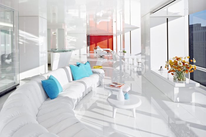But for the most part, Olympic Tower was an extremely well-manicured ghost town, its apartments only intermittently populated by people like Hélène Rochas, who used her 45th-floor François Catroux–designed corner unit as a layover spot on February trips to Barbados. Says former Simon & Schuster publisher and president Joni Evans, who rented in the building in the ’80s, “I would come in from the country house on Sunday nights and feel like I was the only person living full time in the building. Everyone else was in Dubai.”