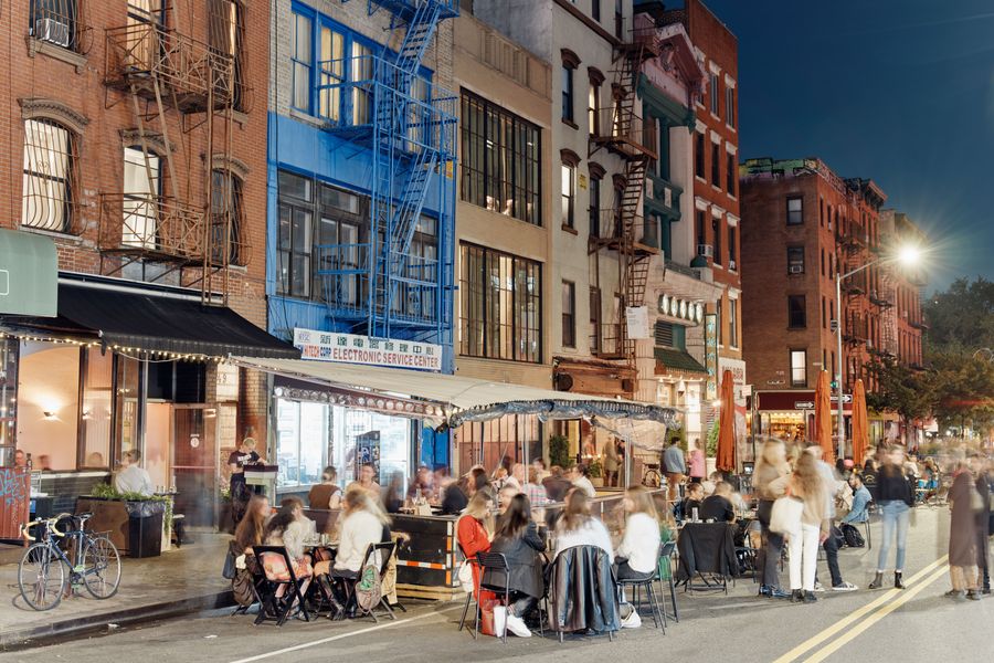 We’ve become inured to eating en plein air, but the Open Restaurants Program was bracingly new. Outdoor dining hadn’t previously been allowed in much of New York. Just 1,224 restaurants had licensed sidewalk cafés, most of them in Manhattan. Fees were steep. In most of the borough, restaurants paid a minimum of $2,579.62 a year for any café taking up 70 square feet or less, and the biggest spaces forked over almost $20,000. Suddenly, outdoor dining cost them nothing. And for the first time, the establishments were allowed to set up not just on the sidewalk but in the street itself.