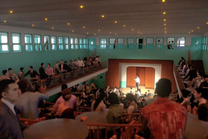 On the website for Castellano’s firm, Studio Castellano, he listed the JFK Ferry as a project he was working on for the client “JFK Partners” with a budget of $34 million and a floor plan of 65,000 square feet. A short video that played on his website last month showed his renderings for each floor: a top deck furnished with patio tables set with umbrellas, another floor with two rows of hotel rooms that open onto sundecks, and a lower level with two clubs. Castellano says the venue is very much in the works — and may eventually open with two restaurants and six bars, whose aesthetics play off the style of the era the boat was built in, in 1965.