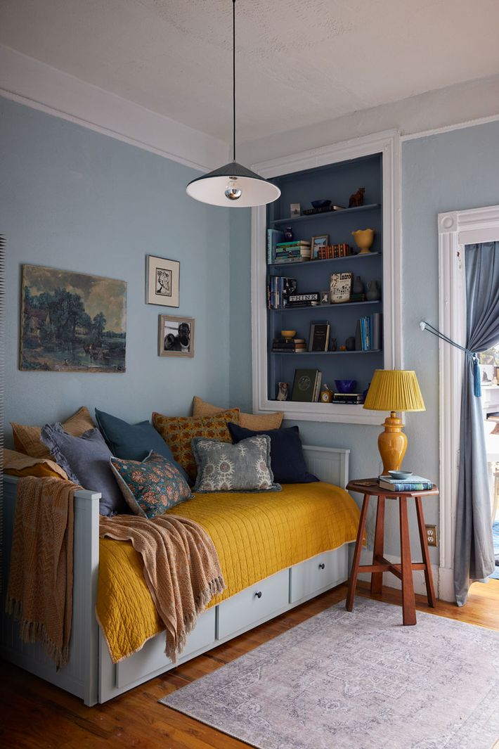 He moved around a lot, sharing apartments with roommates until he struck out on his own in 2021 and found a floor-through rental in Brooklyn that checked all the boxes: “I wanted a place with some character and charm that felt like it had some history. So that was the main thing, and I wanted space, which was difficult budgetwise. But I was looking for a spot where I could host guests; I really wanted that so I could have friends and family visit. And as a prop stylist, I wanted a space with storage. I have a lot of props and décor.”