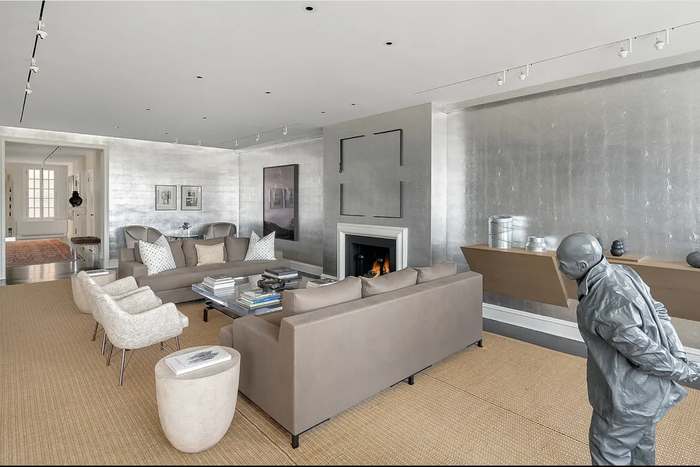 There’s so much expensive-looking art in the listing photos of a three-bedroom across from the Met that one wonders if the silver-walled living room is a conceptual work. Whatever the reason, the silver matches the Juan Muñoz sculpture behind the couch and the Hendrik Kerstens print next to the fireplace titled, appropriately, Aluminum Foil.