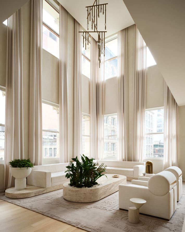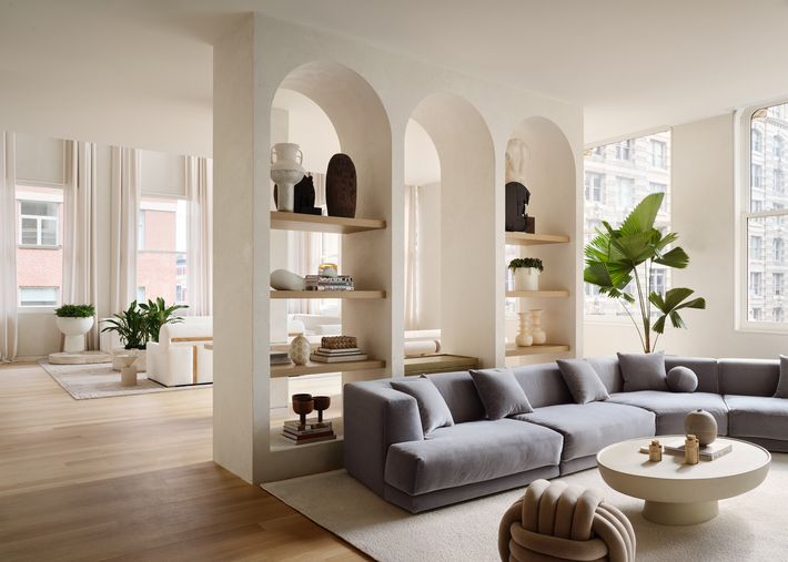“This was actually our first purchase in the city,” Khidekel says of the Tribeca duplex they bought in early 2022. It’s in an 1881 cast-iron building that had once been a textile factory and was redone by the Pritzker Prize–winning architect Shigeru Ban in 2019. “We felt that it fulfilled that criteria of what we were looking for,” Khidekel says. “That feeling that we were hoping to get in Florida.”