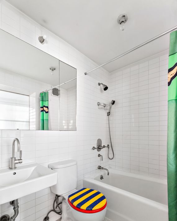 When the architect moved out in 2013, he sold to the artist-chef Laila Gohar and Omar Sosa, the editor of the cult magazine Apartamento, who told the New York Times the apartment was “pristine” when they arrived but hired the artist Sam Stewart to add quirk. Stewart designed a custom sofa, a magnetic knife strip shaped like a hand, and a door fitting for a princess’s tower — a pointy Gothic arch upholstered in brown and gold leather, which they seem to have left behind when they moved out a few years ago. (Gohar, who didn’t respond to an email, offered the unit as a sublet around the time that she and Sosa broke up.)