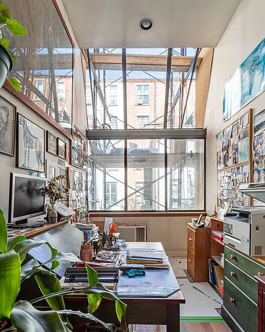 This brownstone two-bedroom has an old-school Upper West Side vibe: 12-foot ceilings, wood paneling, an exposed-brick wood-burning fireplace, and a mezzanine loft with compact kitchen tucked underneath. Not everyone will love the multilevel arrangement — the apartment is actually on three levels with stairs up to a sleeping loft and a few steps down to the kitchen and bathroom — but it certainly maximizes the space. The living/dining room also lacks a window, but one of the bedrooms off the living room is a solarium with a wall of windows. The building is less than a block from Riverside Park in the heart of the Upper West Side, and it allows pets.